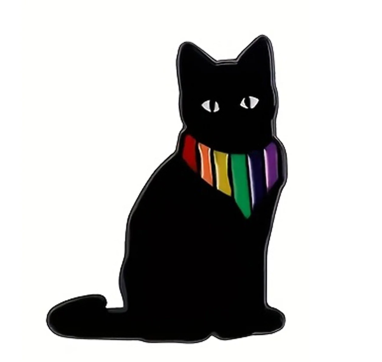Crafted from durable metal with a smooth enamel coating, it’s built for everyday wear while maintaining its bold look. A great piece for cat lovers, pride supporters, and anyone who appreciates simple but powerful design.