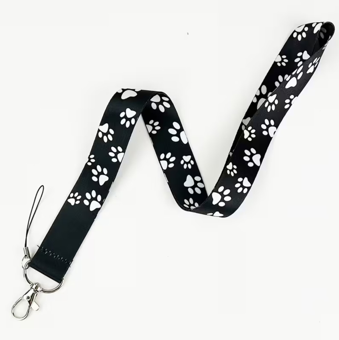 Minimalist black lanyard with white paw prints. A must-have for dog lovers.