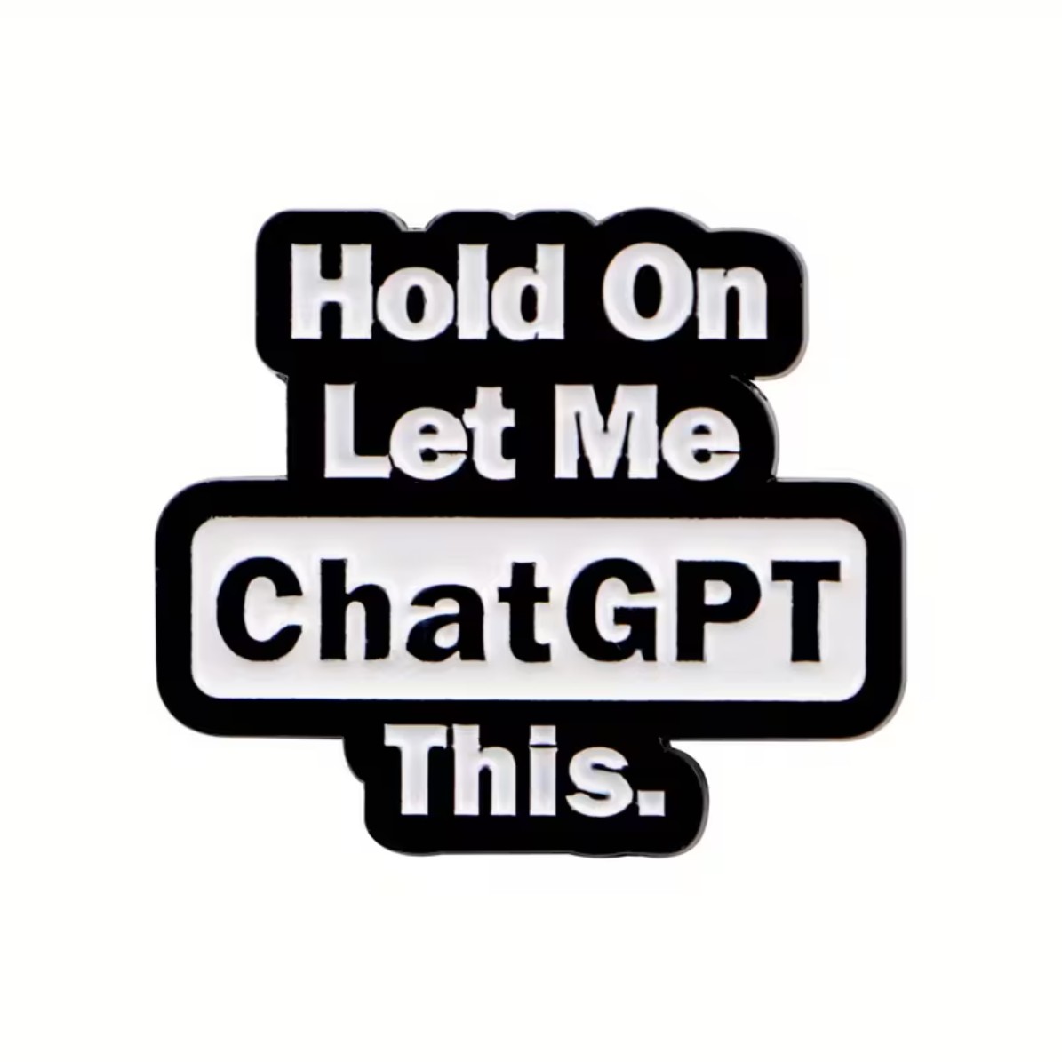 Showyour love for AI with this fun enamel pin that reads ‘Hold On Let Me ChatGPT This.’ Perfect for tech enthusiasts, this durable enamel pin has a secure clasp and looks great on jackets, bags or hats.
