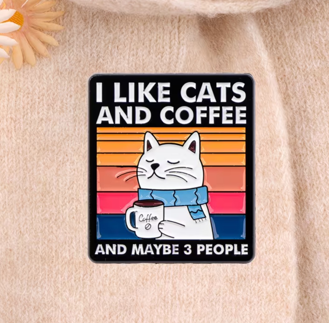 With its bold colors and clean enamel finish, it stands out beautifully on jackets, backpacks, hats, or lanyards. Whether you’re a cat lover, a coffee addict, or just someone who prefers a quiet life, this pin says it all without you having to explain yourself.