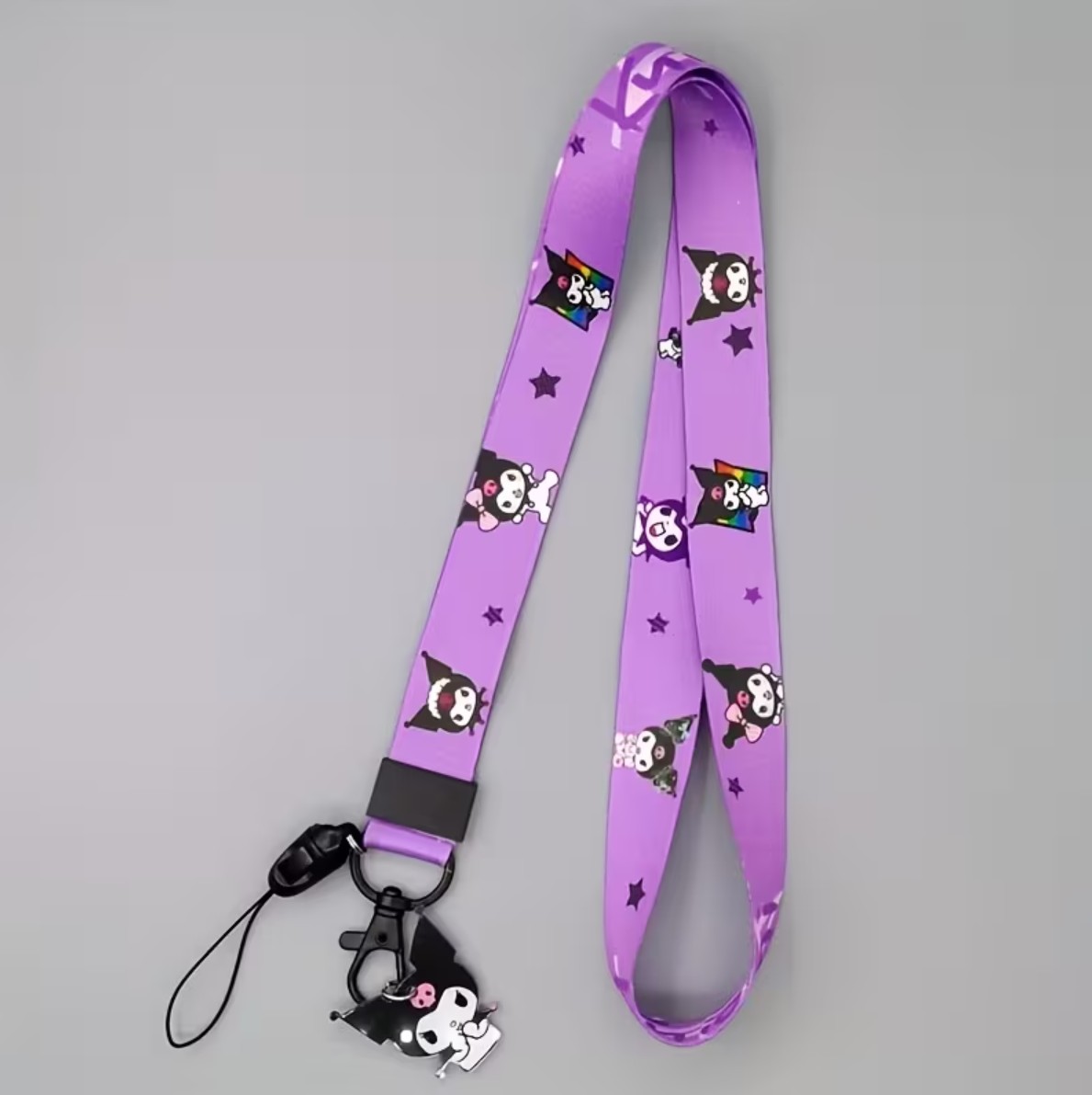 Playful purple lanyard featuring Kuromi-themed graphics for a bold and cute everyday accessory.