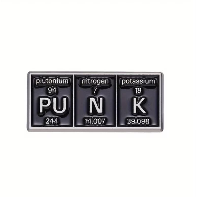 This clever enamel pin spells out PUNK using the periodic table elements plutonium (Pu), nitrogen (N), and potassium (K). The sleek black background with metallic lettering gives it a subtle yet rebellious edge perfect for chemistry buffs, punk rockers, and anyone who loves a good nerdy pun. Pin it to jackets, backpacks, or hats for an instant conversation starter.
