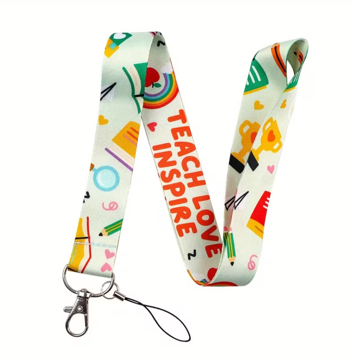 Bright and creative lanyard designed for teachers, featuring school-inspired elements.